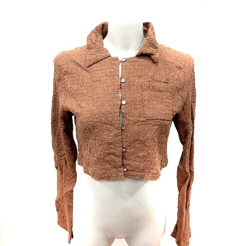 【中古】マウジー MOUSSY シャツ ブラウス 長袖 麻 リネン F 茶 ブラウン /RT レディース