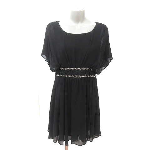 【中古】ニコルセレクション ワンピース ミニ レース ラインストーン ビーズ シアー 半袖 38 黒 レディース