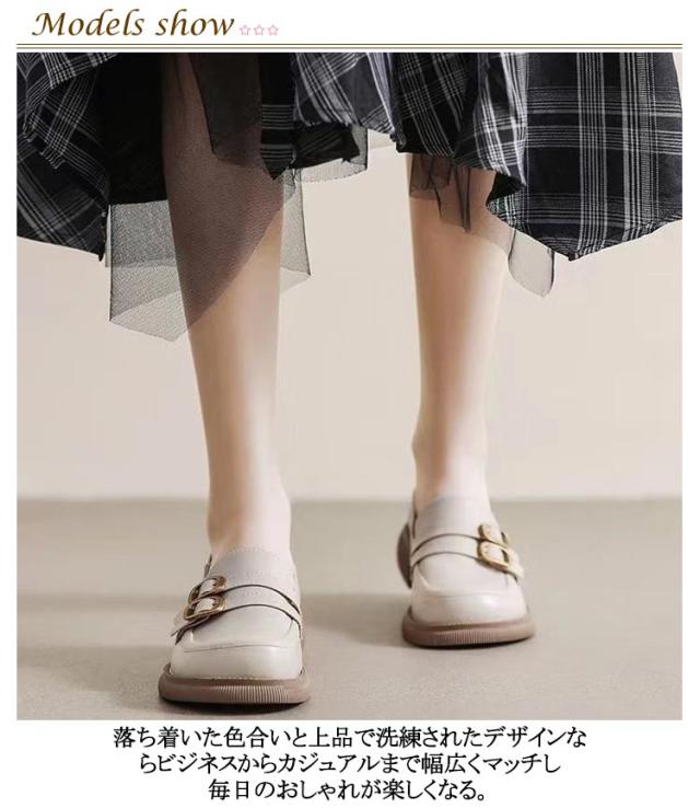 | ダブルストラップデザインで厚底ローファー。 落ち着いた色合いと上品で洗練されたデザインならビジネスからカジュアルまで幅広くマッチし毎日のおしゃれが楽しくなる。 履いた瞬間からわかるやわらかな素材なら長時間の立ち仕事や移動でも快適な履き心地を体験できます。 ストレスフリーの歩きやすさとスタイルアップを叶えてくれる安定感あるヒールなら長時間履いても疲れにくいです。 程よいボリューム感のあるシルエットとローファーのディテールがマッチした一足。 | |