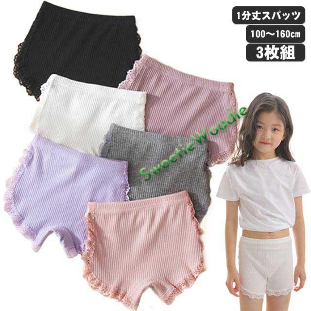 インナーパンツ 【3枚組】オーバーパンツ スパッツ ペチパンツ 【3枚組】オーバーパンツ 子供 1分丈 スパッツ レギンス パンツ キッズ 女の子 ベビー服 ストレッチ 幼稚園 アンダーパンツ レース 無地 小学生 ペチコート ショートレギンス 伸縮 通気性 夏