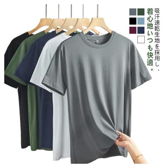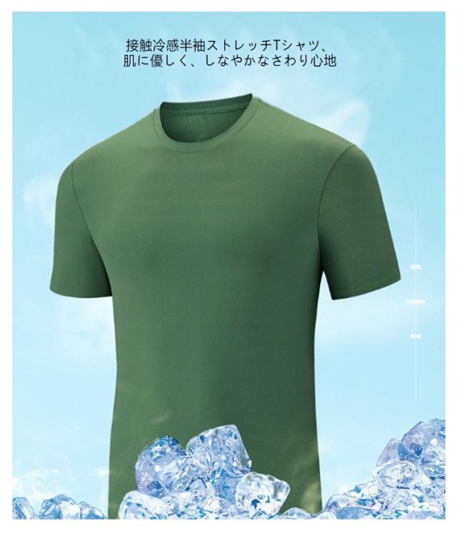 吸汗性 Tシャツ 半袖Tシャツ ひんやり 接触冷感 トップス クルーネック メンズ 防臭 速乾 薄手 ストレッチ 接触冷感 冷感 無地 伸縮性 通気性 抗菌 インナー カットソー 肌着 トップス 爽やか 夏物 スポーツ アウトドア クール