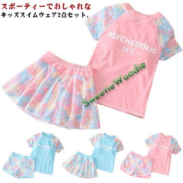 水着 ジュニア水着 ラッシュガード キッズ水着 セパレート ショーツ フィットネス水着 2点セット 上下セット 2点セット 水着 小学生 100-150cm ガールズ スクール水着 水陸両用 スカート インナーパンツ付き 子供水着 ビーチ 海