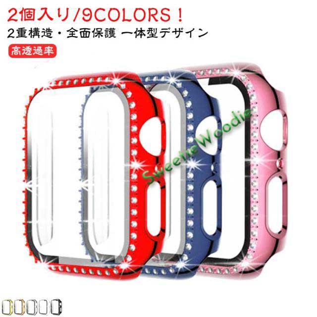 2個入 ガラスフィルム series7 カバー アップルウォッチ se 一体型 保護カバー 2個入 apple watch ケース se2 Ultra series10 series9 series8 キラキラ series6 series5 series4 series3 series2