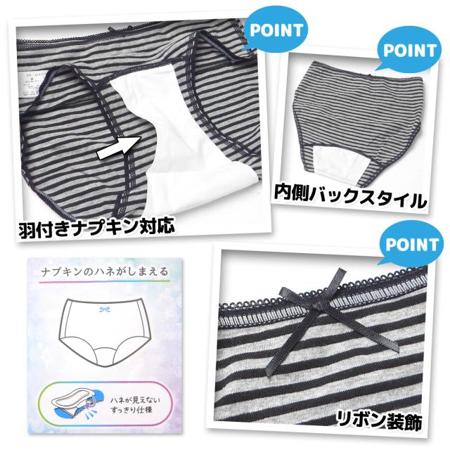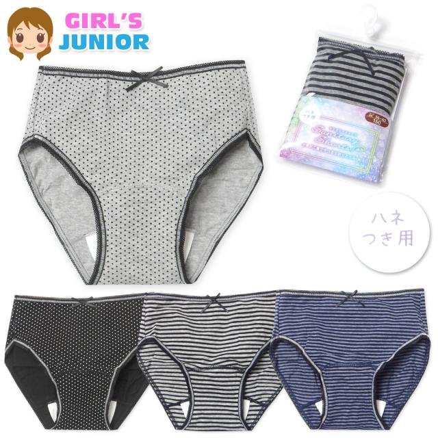 【送料無料】女児 ジュニア サニタリー ショーツ 生理用 羽付きナプキン対応 ストレッチ 綿混 肌着 下着 インナー 子供 女の子 150cm 160cm 165cm yg-2524【メール便対応】