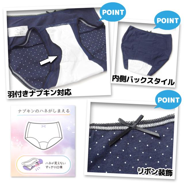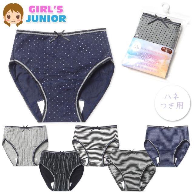 【送料無料】女児 ジュニア サニタリー ショーツ 生理用 羽付きナプキン対応 ストレッチ 綿混 肌着 下着 インナー 子供 女の子 150cm 160cm 165cm yg-2525【メール便対応】