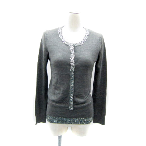 【中古】ルスーク アンサンブルニット カーディガン カットソー 半袖 スパンコール 38 M グレー レディース
