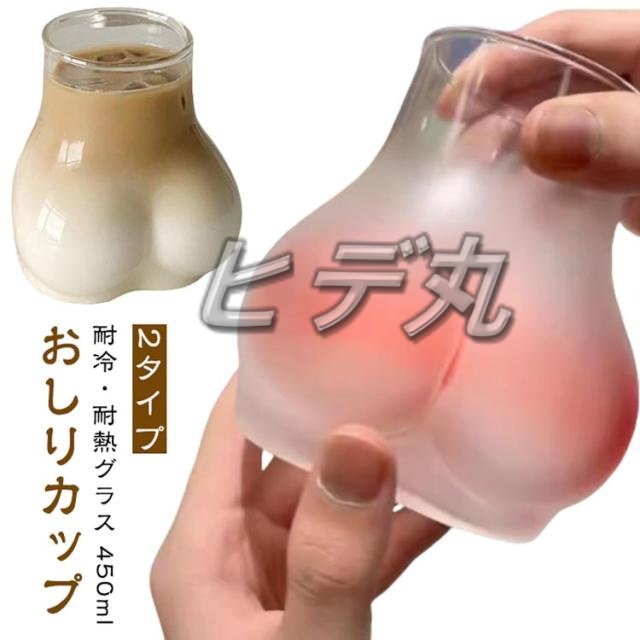 耐熱 マット グラス おしゃれ ガラスカップ 透明 タンブラー お尻 おしりカップ ジュース ミニコップ インスタ映え かわいい おもしろ食器 コーヒーカップ ミルク 450ml ドリンクジャー コーヒー用 耐熱 ガラスジャー 直飲み