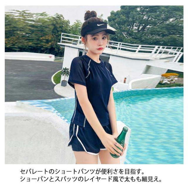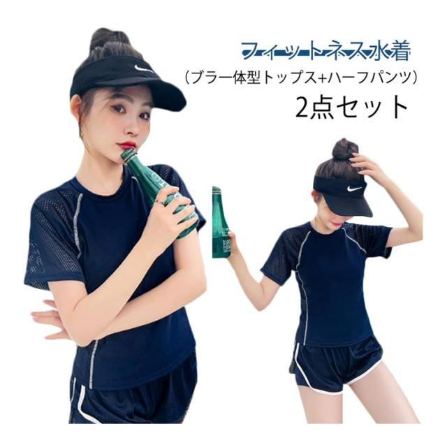 海 プール セパレート フィットネス水着 フィットネスウェア 2点セット スポーツ水着 レディース 半袖 セパレート 運動 20代 体型カバー フィットネス水着 学生 女子 ヨガ服 30代 みずぎ パッド付き 水着 ビキニ 練習用 速乾性 紫外線対策 露出控えめ