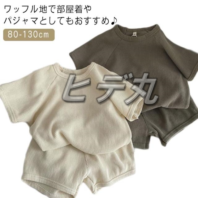 110 90 セットアップ キッズ サマーニット ワッフル 通園 ベージュ ブラウン カーキ 80 男の子 100 アイボリー 120 130 子供服 部屋着 夏 遊び着 リラックス 半袖 ハーフパンツ 秋 春 キッズ こども服 ベビー 韓国ファッション