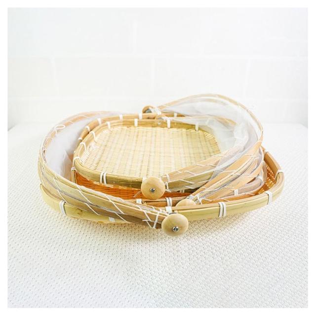籐 野菜バスケット ネット付き 梅干し 竹ざる 竹ざる 虫対策 水切りザル 青竹もり皿 多機能 天日干し 梅ざる ウメ 竹かご 可動式フタ 害虫制御 陰干し 漬物 盆ざる 通気 乾燥 防塵 収納 保存 使いやすい 籐巻盆ざる 台所用品 3サイズ 丸型