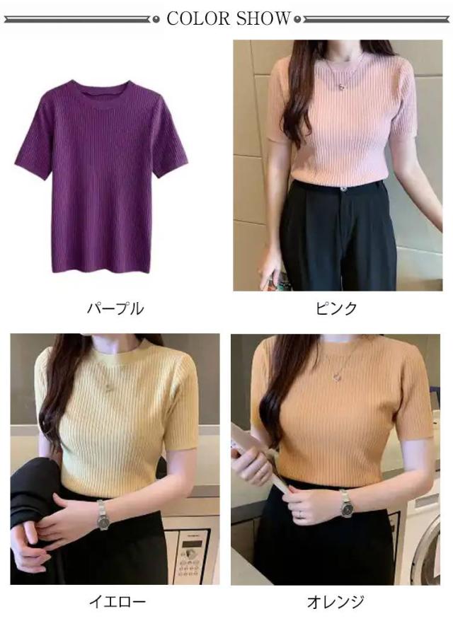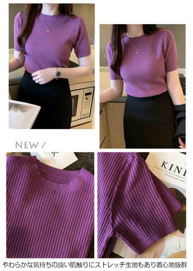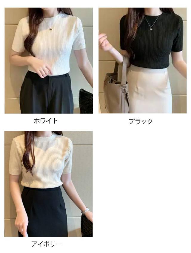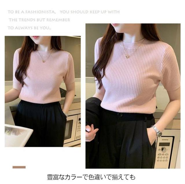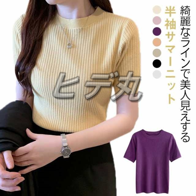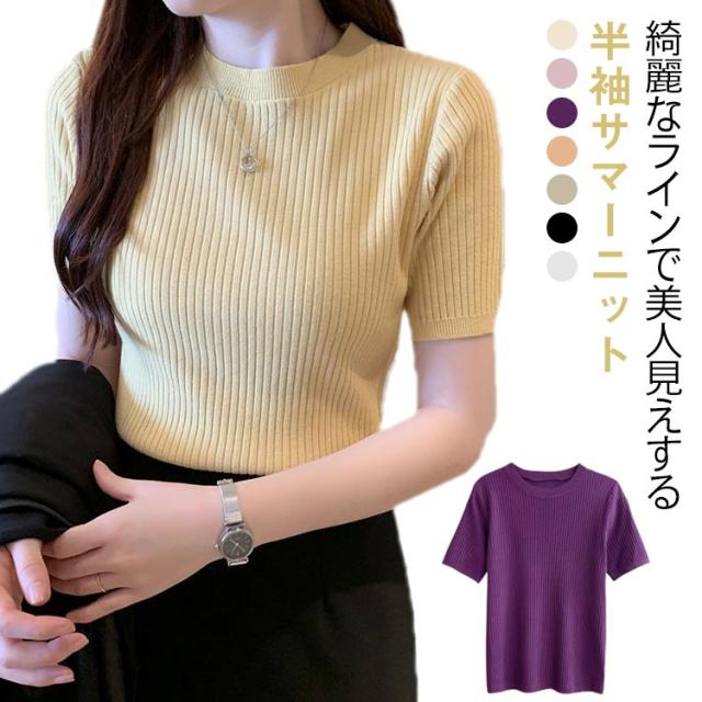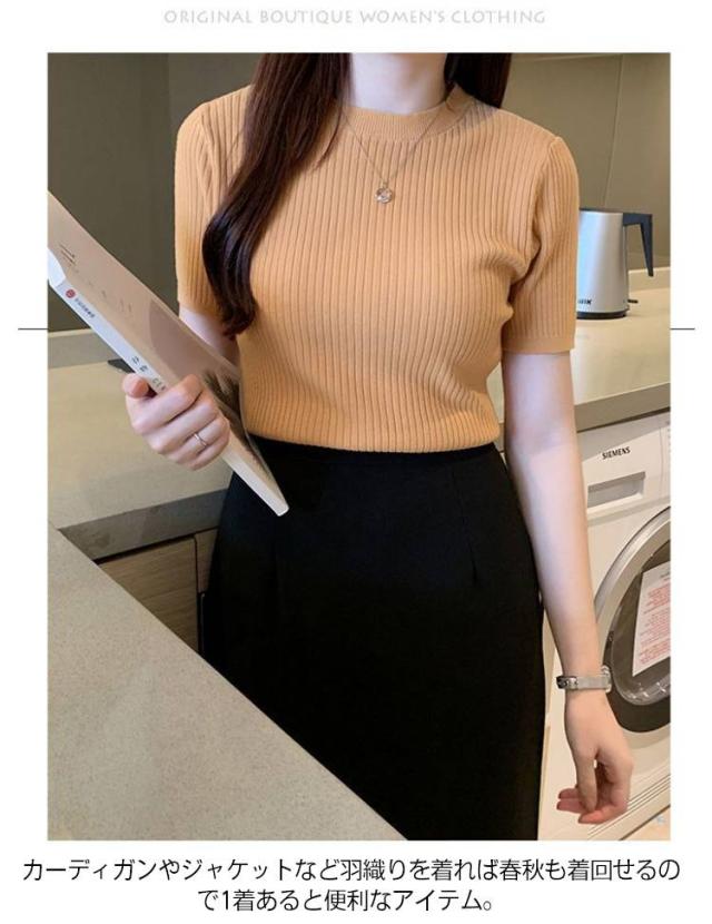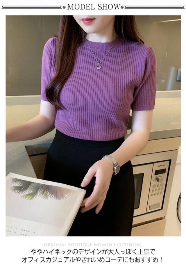 サマーニット ニット 半袖 レディース トップス ハイネック リブニット 春夏 ストレッチ きれいめ 無地 シンプル オフィス オフィスカジュアル フィット ストレッチ 夏ニット 上品 半袖ニット カットソー やわらかい 大人 女性 可愛い 夏 送料無料