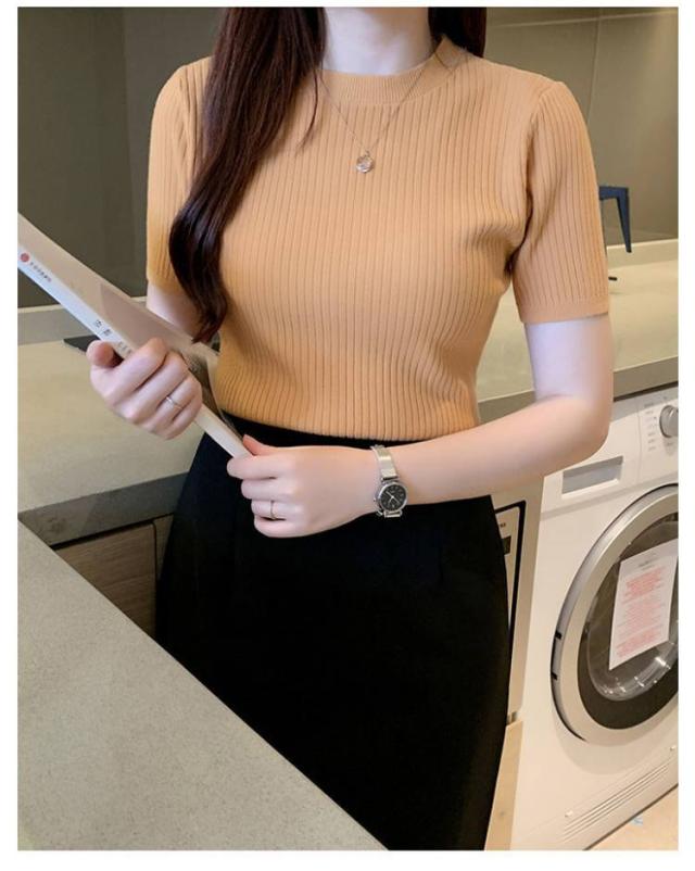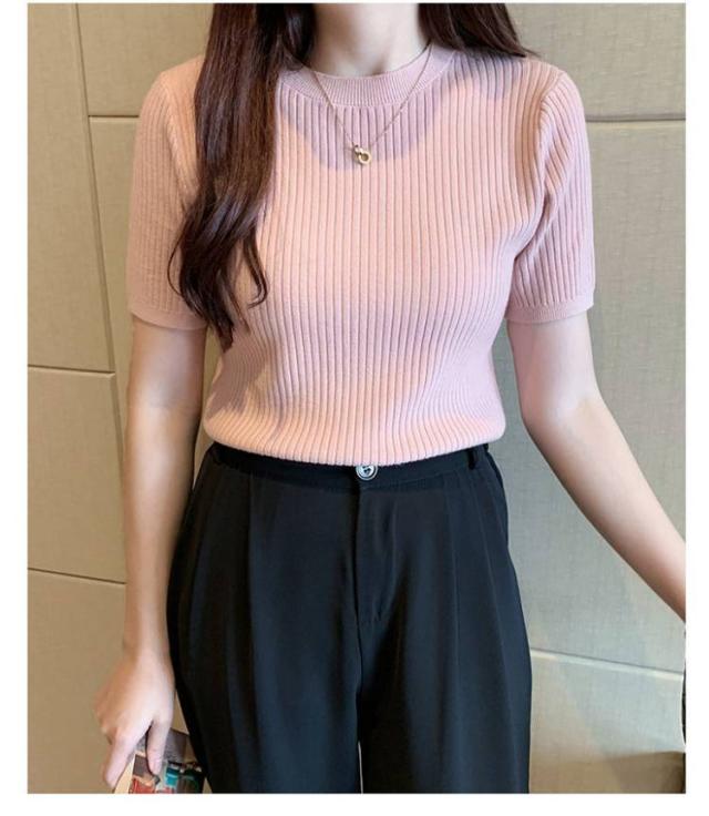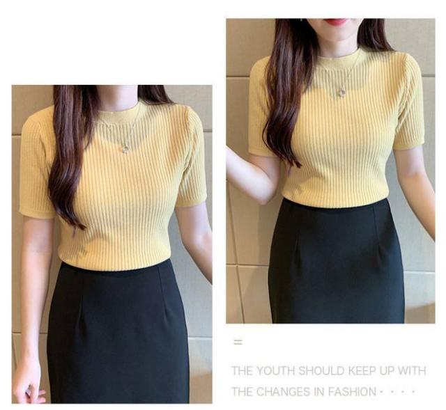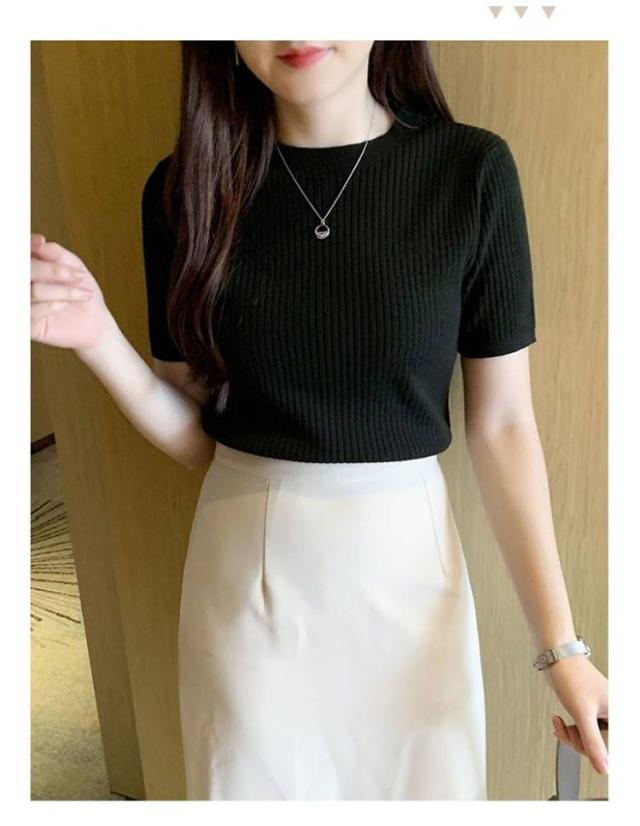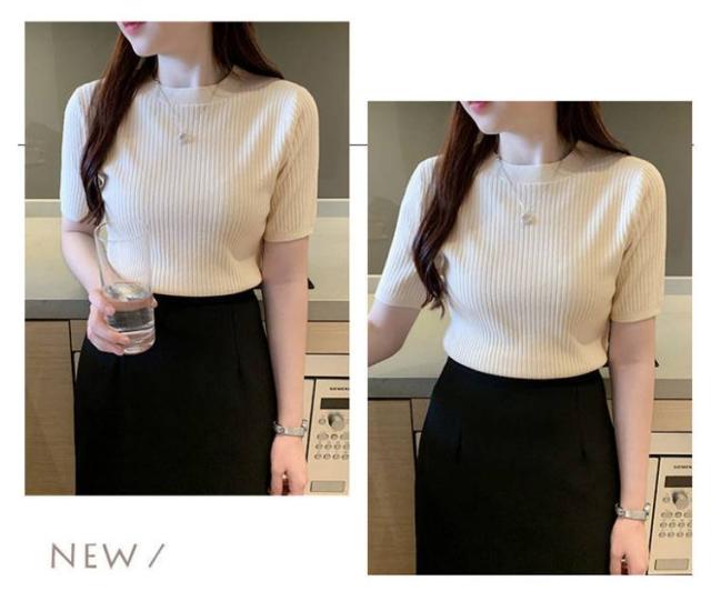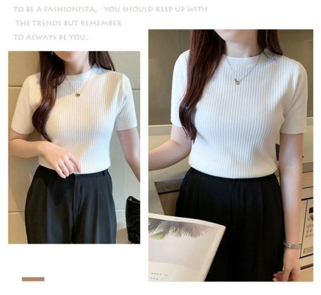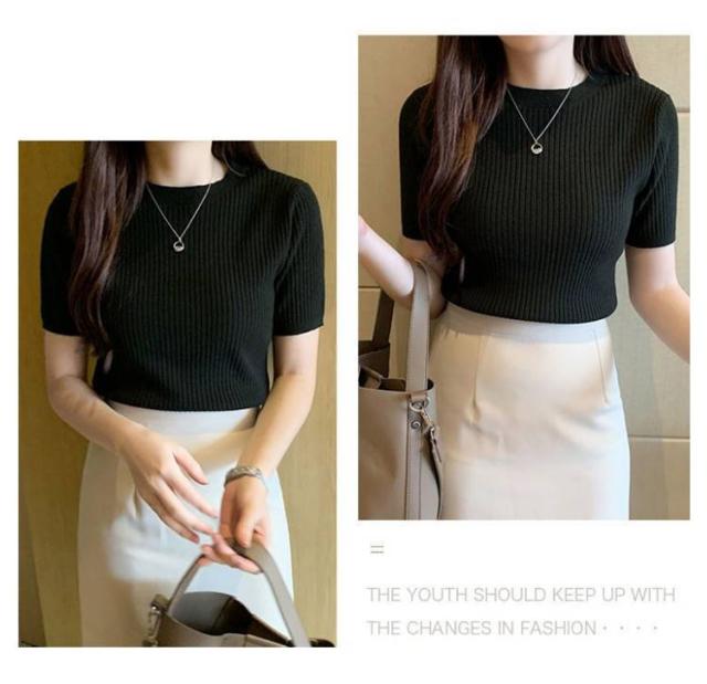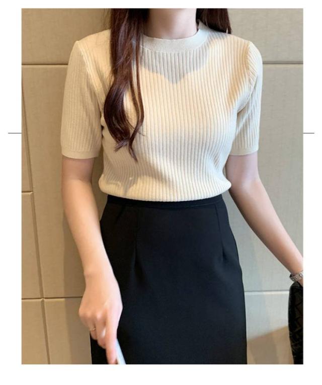 サマーニット ニット 半袖 レディース トップス ハイネック リブニット 春夏 ストレッチ きれいめ 無地 シンプル オフィス オフィスカジュアル フィット ストレッチ 夏ニット 上品 半袖ニット カットソー やわらかい 大人 女性 可愛い 夏 送料無料