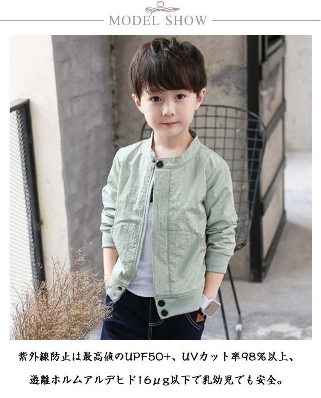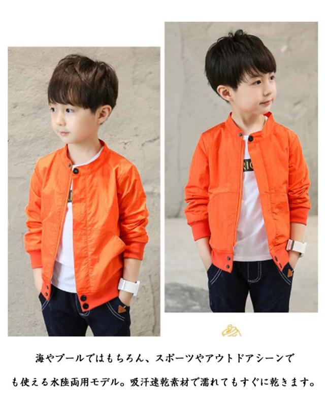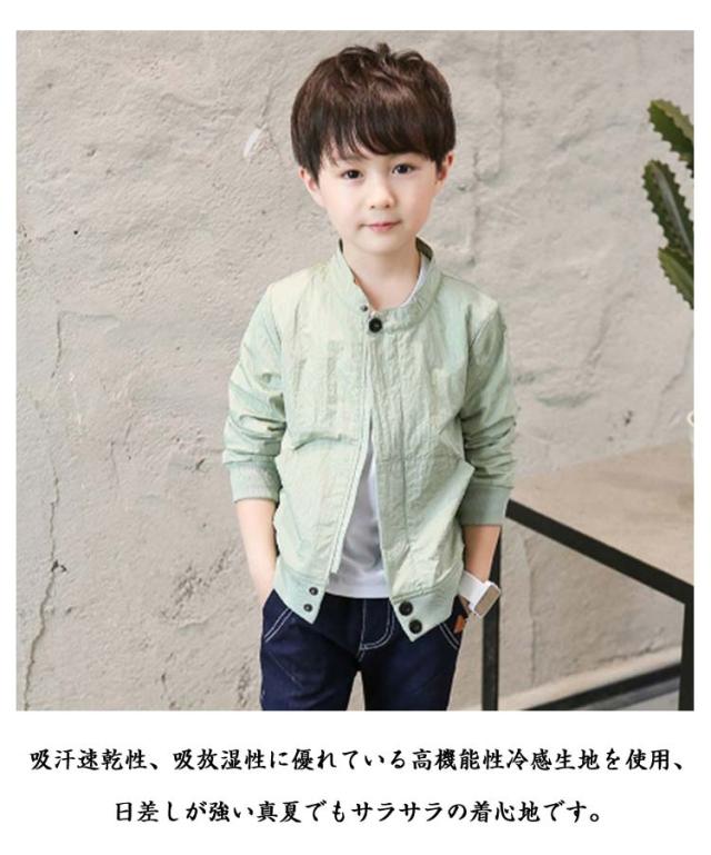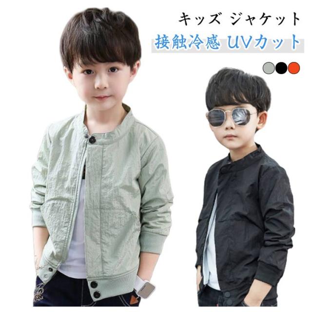 UVカット キッズ UVカット ジャケット 紫外線カット ラッシュガード パーカー ジャンパー 男の子 接触冷感 フードなし 薄手 無地 uvパーカー マウンテンパーカー 子供服 アウター 通気性 柔らかい 紫外線対策