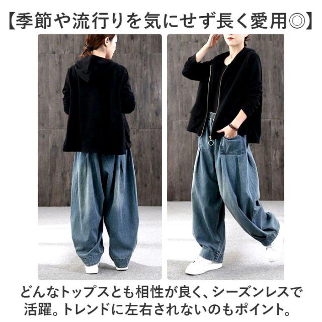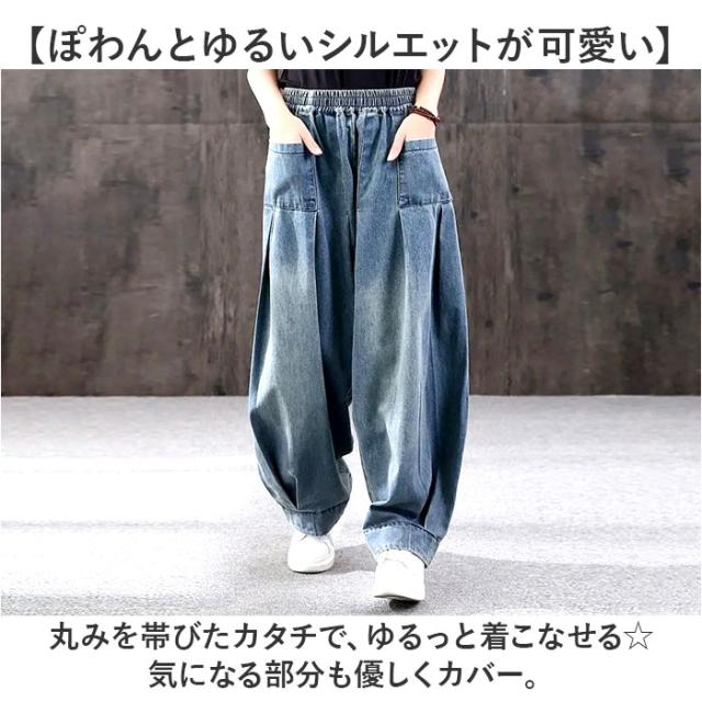 デニムパンツ ワイド レディース 通販 ワイドパンツ サルエルパンツ ズボン パンツ ジーパン ジーンズ デニム サルエル レディースパンツ カジュアルパンツ ロング丈 ロング ポケット ゆったり 体型カバー カジュアル オールシーズン ボトムス