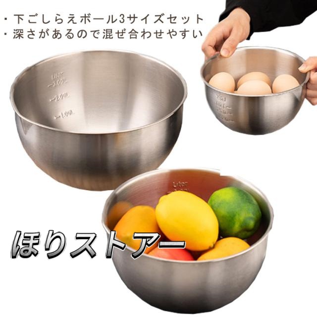下ごしらえセット ボウル セット ステンレス ステンレスボウル 3サイズセット 1500ml 2500ml 4500ml ボール 目盛り付き 調理器具 キッチン用品 キッチンツール ギフト プレゼント お菓子作り 新生活 一人暮らし ステンレスボール