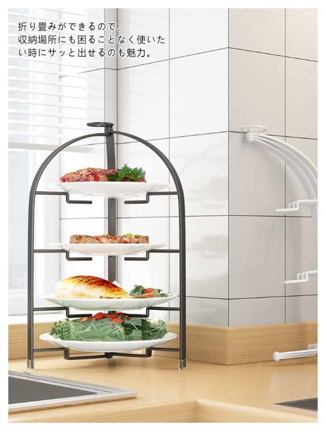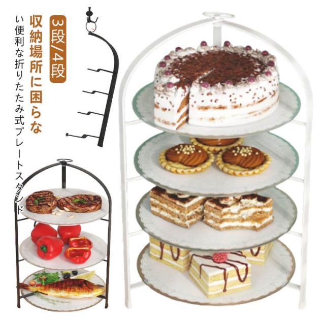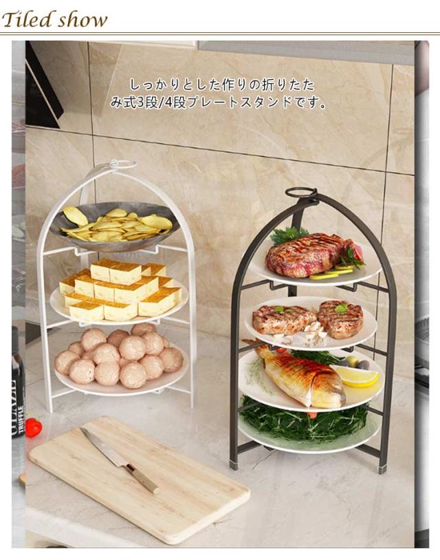 3段 折りたたみ式 食器 折りたたみ アフタヌーンティースタンド プレートスタンド ケーキスタンド スタンド ホワイト 折り畳める 折りたたみ 取っ手 アフタヌーンティー ブラック 黒 白 おしゃれ 4段 シンプル 高級 上品 カフェ