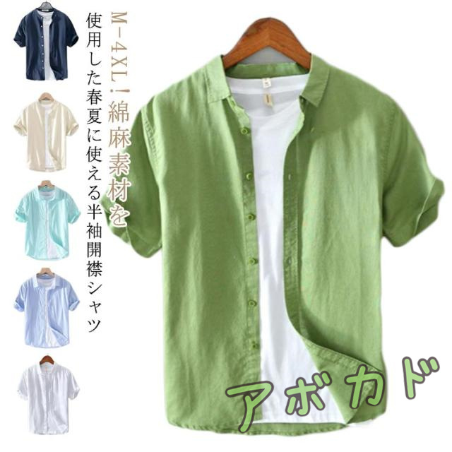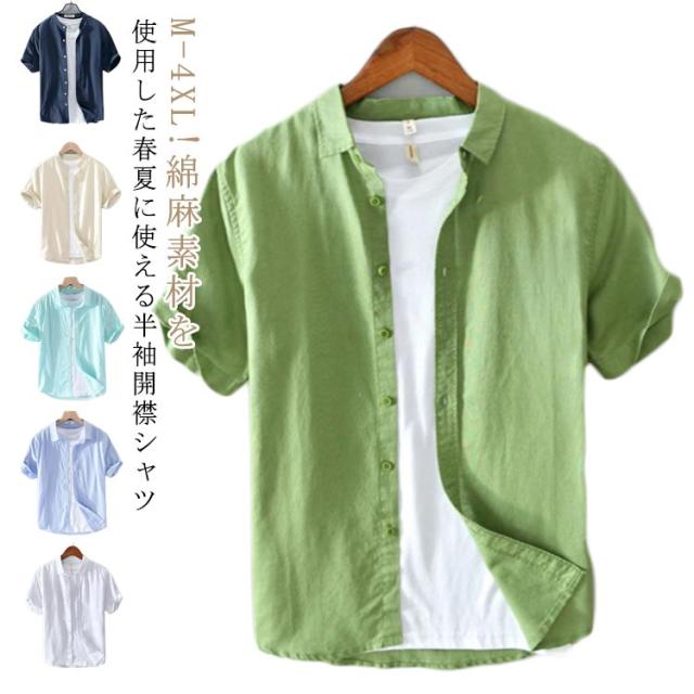 | M-4XL!綿麻素材を使用した春夏に使える半袖開襟シャツ ナチュラルな風合いが楽しめる涼しげな着心地、これから大活躍してくれそうな綿麻シャツです。 軽量で爽やかな半袖シャツに仕上げ。快適な生地感ながら肌ざりが優れており、着回しの可能性を広げる頼まれるカジュアルシャツです。 きちんと感があるシルエットがポイント、シンプルな無地のボトムスとの合わせるだけでも、コーデが決まります。 | |