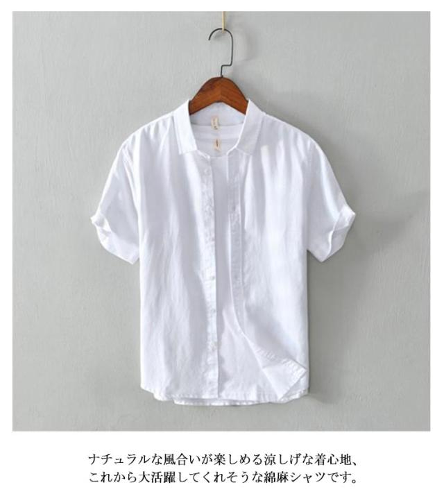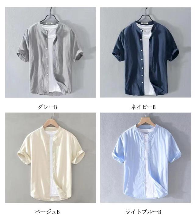 スリム リネンシャツ 半袖シャツ カジュアルシャツ メンズ 夏 シャツ 開襟シャツ 春 ストレッチ 秋 おしゃれ 半袖 麻シャツ シャツワイシャツ ボタンダウン 無地 カジュアル 綿麻 スタンドカラーシャツ 速乾 薄手 細身 男性 涼しい 綿麻 夏物 父の日 プレゼント