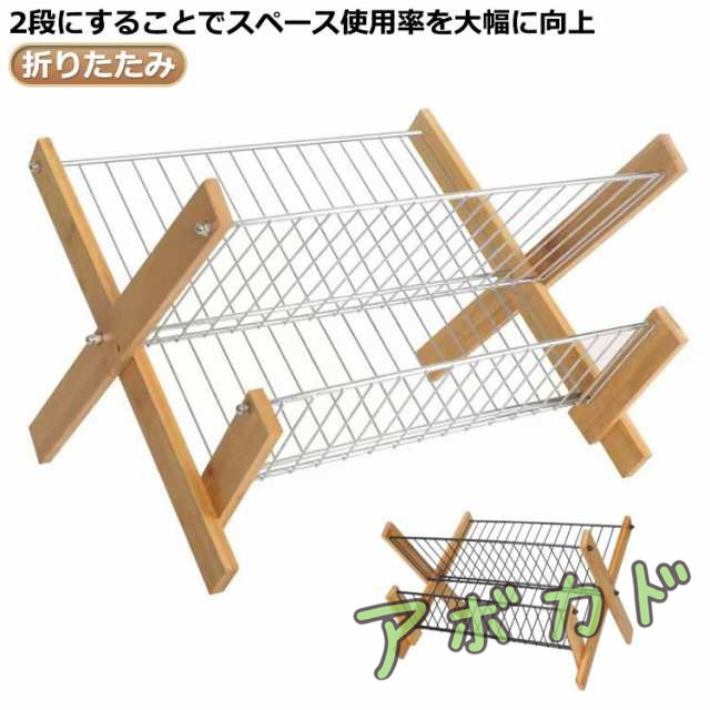 折りたたみ 送料無料 2段 食器 大容量 食器ホルダー 水切りトレー 水切りラック 竹製/ステンレス製 多機能収納 お皿立て キッチン収納 折畳み キッチン 竹製/ステンレス製 お皿 茶碗 ホルダー 台所 コンパクト 整理 木製 包丁立て 収納便利