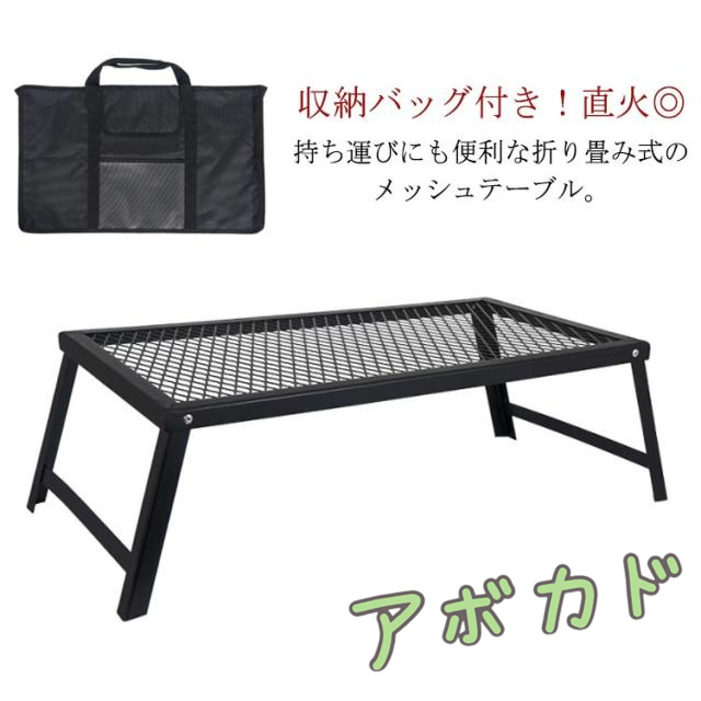 | 持ち運びにも便利な折り畳み式のメッシュテーブル。収納バッグ付き!直火◎ クーラボックスや調味料、調理器具、荷物など地面に置きたくないものの置き場として使用いただけます。散らかりやすいキャンプサイトに欠かせない便利なアイテムです。 耐熱性に優れているローテーブルですから、ダッチオーブン、鍋やフライパン等の熱のある物を置くのが便利です。直火にも対応可能で、バーベキューグリル、大型ゴトクとしても使用できます。 メッシュテーブルは高品質のスチールを採用し、表地の隅々まで落ちにくい黒メッキを美しく仕上げることにより、水とサビに強い、汚れても丸々水洗いできます。 収納バッグ付きで、場所を選ばずコンパクトに収納も持ち運び可能です。ソロキャンプや登山など荷物を減らそうな場合には大人気です。 キャンプシーンのみならず、室内のインテリア等にも活用出来てシーンを選ばないマルチラックです。 | |