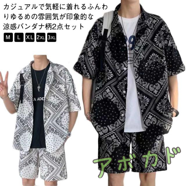 半袖 アロハシャツ 接触冷感 ゆったり ペイズリー セットアップ 2点セット プリント バンダナ柄 夏 和柄 おしゃれ 開襟シャツ 涼感 薄手 速乾 海 メンズ ストリート 原宿系 カジュアルシャツ 冷感 大きいサイズ