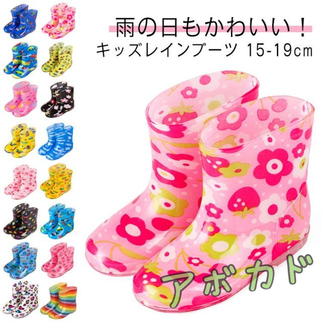 | 雨の日もかわいい!キッズレインブーツ 15-19cm 柔らかいPVC素材でお子さまの動きにフィットし、とても歩きやすいです かるい履き心地♪縫い目が肌に当たらない縫製 耐摩耗性・滑べり止め効果の高い裏面凸凹デザイン雨の日の濡れた床も滑りにくく安心です | |