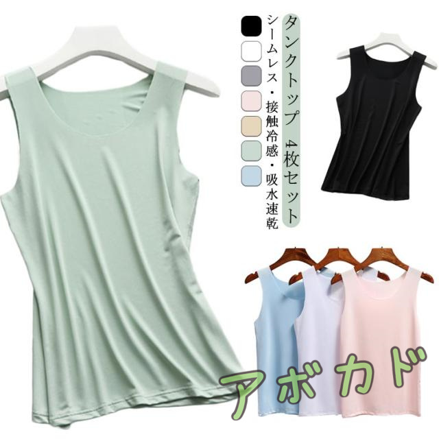 トップス インナー 肌着 速乾 接触冷感 涼感 4枚セット 冷感 吸水 レディース ひんやり 無地 下着 Uネック シームレス インナーシャツ 夏 スポーツ アンダーウェア ノースリーブ ストレッチ 大きいサイズ タンクトップ レイヤード