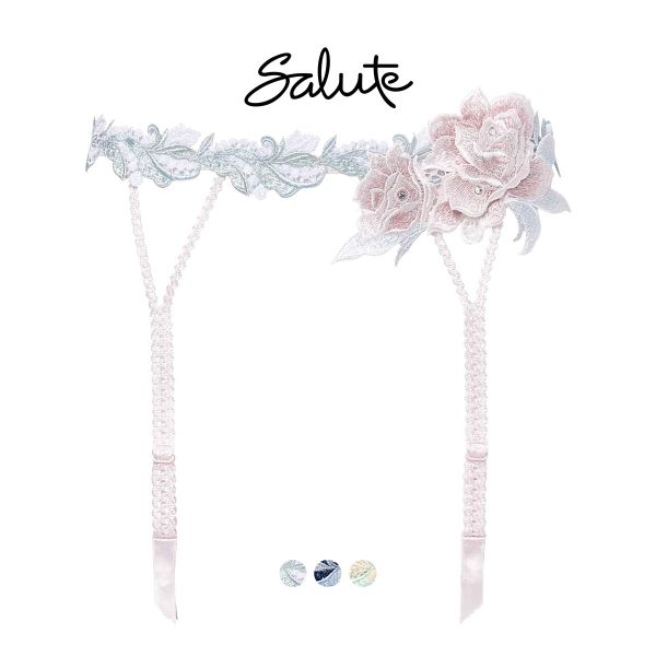 長く美しい髪の毛をモチーフにデザインしたガーターベルト。ウエストにレースをぐるりと一周飾り、バラの花をイメージしたアップリケをあしらったプレシャスなデザインです。