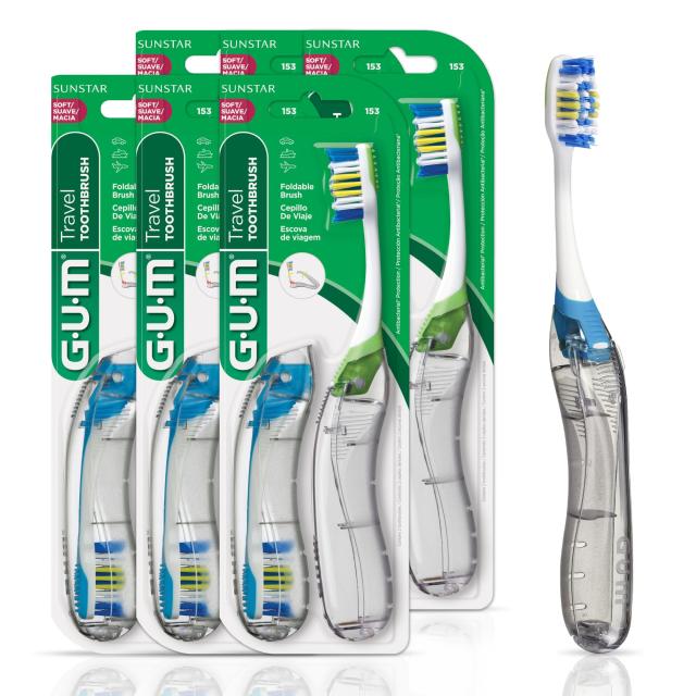GUM (ガム) 折りたたみ式 トラベル用柔らか歯ブラシ 3つ折りタイプ 舌クリーナー付き ポケット、バッグ、スーツケース、ポーチに簡単に収
