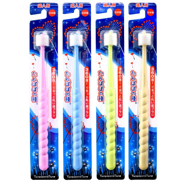 たんぽぽの種 360度ぐるっと丸い歯ブラシ 極細毛 (成人用 4本セット)