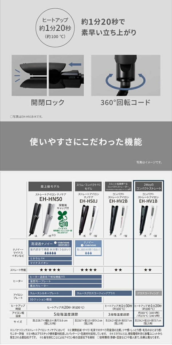 パナソニック コンパクトストレートアイロン EH-HV1B ヘアーアレンジ コンパクト ストレイト&カール