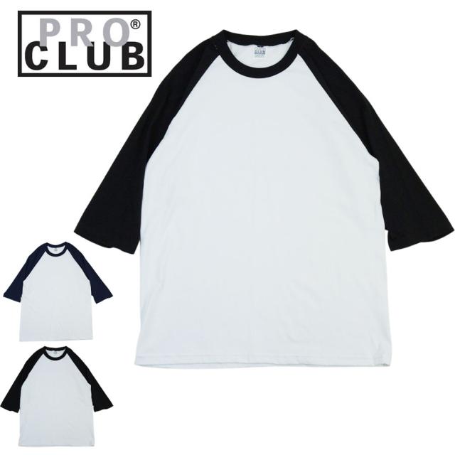 プロクラブ PRO CLUBメンズ Tシャツ3/4スリーブ ラグランTシャツWHITE/BLACK ホワイトブラック WHITE/NAVY ホワイトネイビー黒 白 紺 厚手 カットソー 無地 インナー トップス 男女兼用