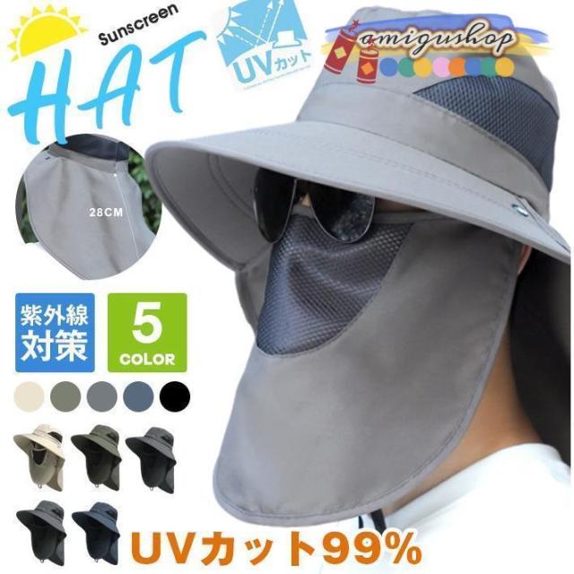 サファリハット ゴルフ バケットハット 帽子 UPF50+ メンズ レディース 男女兼用 フェイスカバー メッシュ 通気性 あご紐付 UVカット 紫外線対策