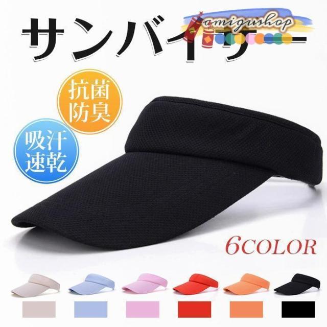 サンバイザー レディース メンズ 男女兼用 日よけ帽子 テニス ツバ広 ゴルフ 吸汗速乾 抗菌防臭 ランニング ジ