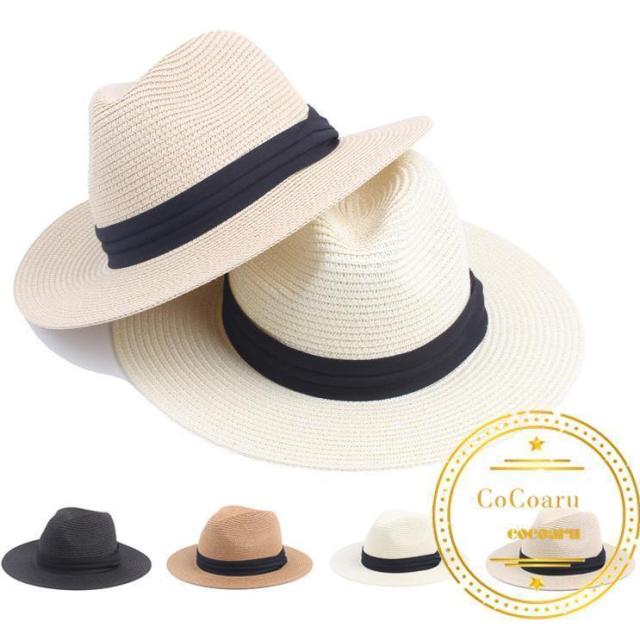 麦わら帽子 メンズ ハット つば広 夏 中折れ帽 紳士帽 ストローハット 折りたたみ 大きいサイズ アウトドア サファリハット UVカット ブラック カーキ