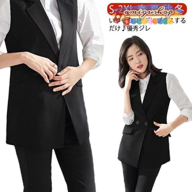 事務服 ベスト ベスト 春 トップス 春秋 トレンチベスト 大人 冬 ビジネス 無地 ロングベスト ジレ フォーマル ミドル丈 ミドルジレ ノースリー