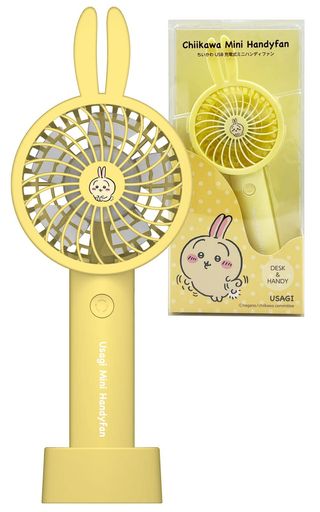 多摩電子工業 ちいかわハンディファン SQ-SK121LY-U (うさぎ レモンイエロー) シリコン製の耳カバー 取外し可能 スタンド付属 風量調整機能 軽量&コンパクト手持ち扇風機 卓上扇風機 USB充電 …