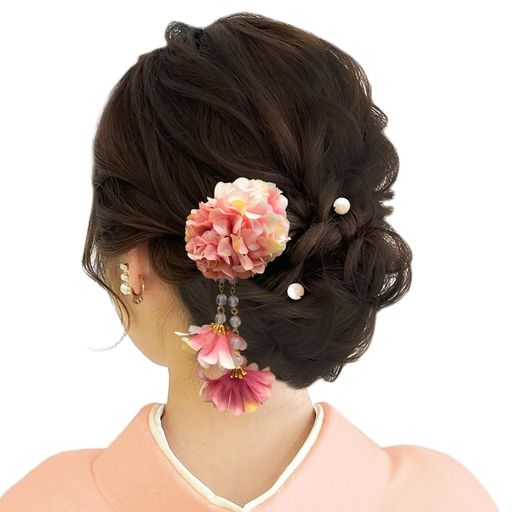 BARAMOLY 髪飾り 和装 着物 浴衣 アートフラワー 造花 花飾 祭り 花火大会 成人式 結婚式 卒業式 七五三 ウエディング 謝恩会 かわいい 8色展開 クリームXピンク