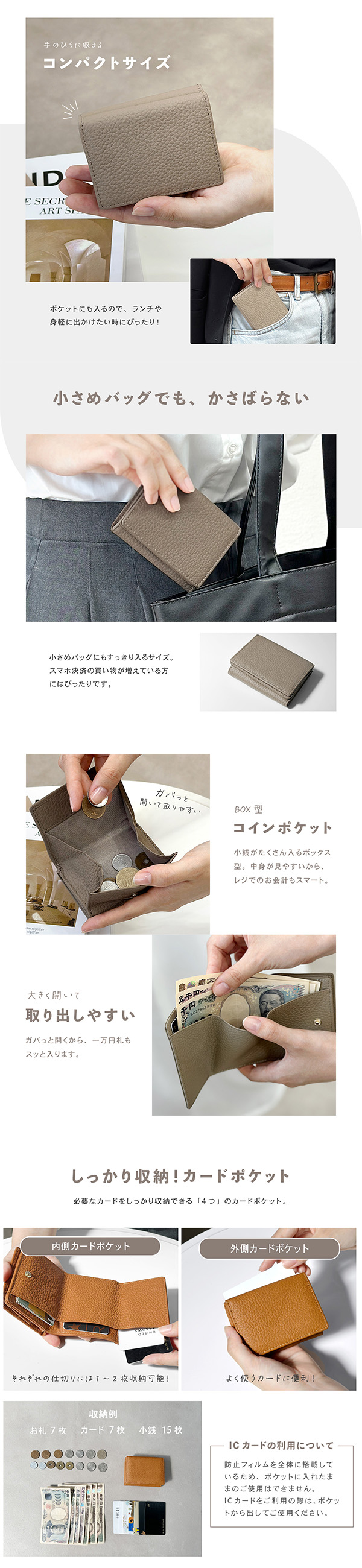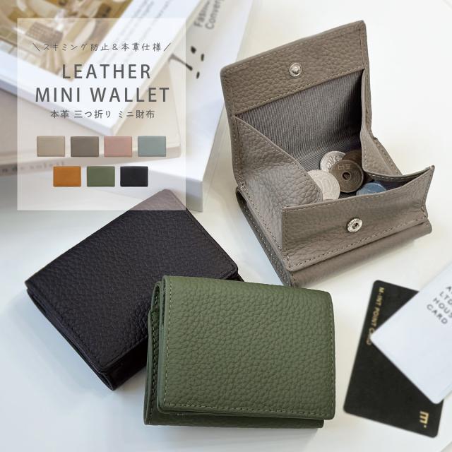 ミニ財布 本革 メンズ レディース スキミング防止 コンパクト 小さい財布 小銭入れあり BOX型 ユニセックス ミニウォレット 革 三つ折り 札入れ カードケース 薄型 小銭入れ キャッシュレス スマート決済 カード派 現金派 サブ財布 旅行用