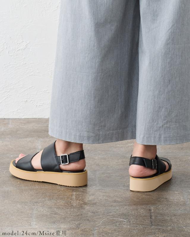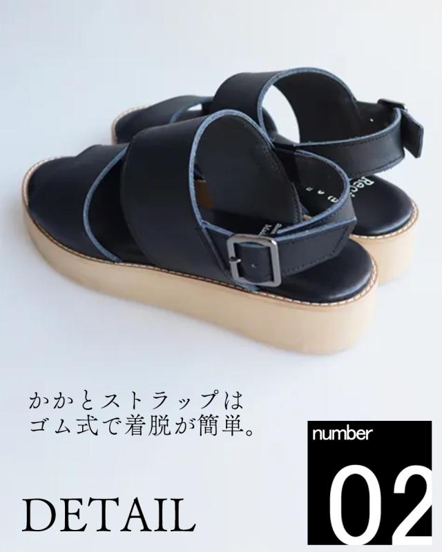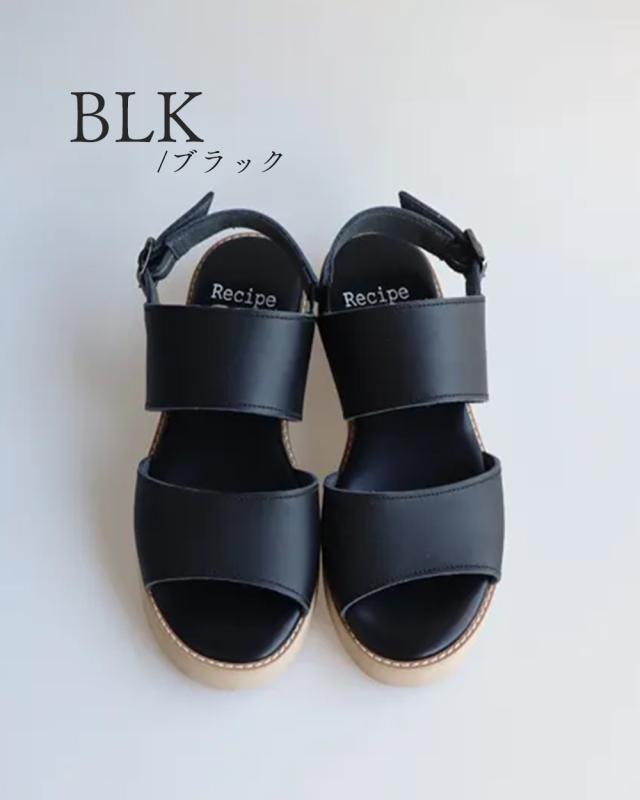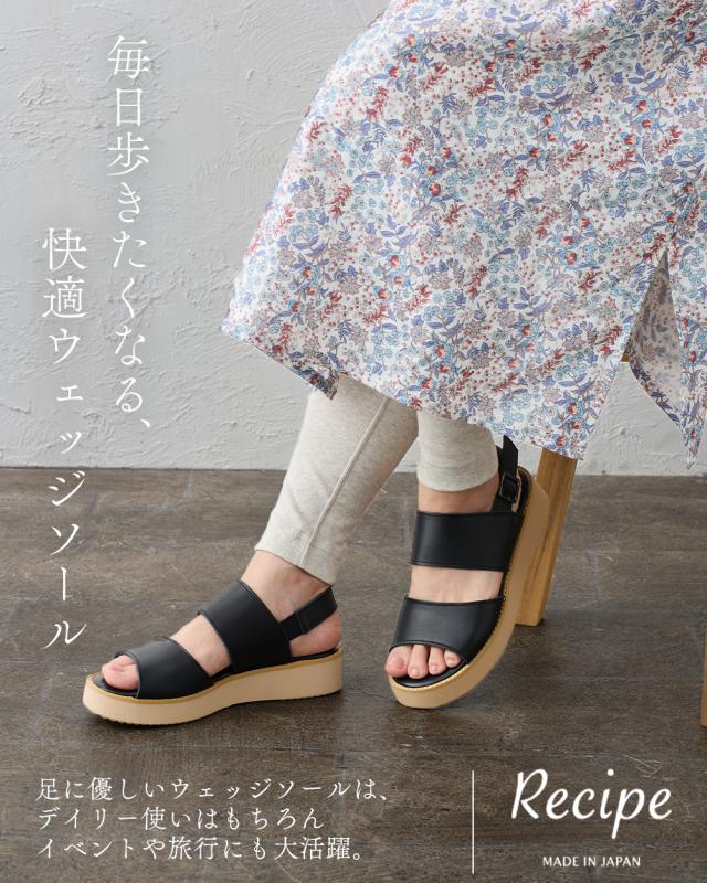 [日本製] 厚底レザーサンダル サンダル 本革 レザー 厚底 夏 靴 くつ 柔らかい 痛くない 伸縮性 涼しい 軽量 外反母趾 レディース ファッション シンプル 大人 カジュアル おしゃれ recipe レシピ ブラック RP-507
