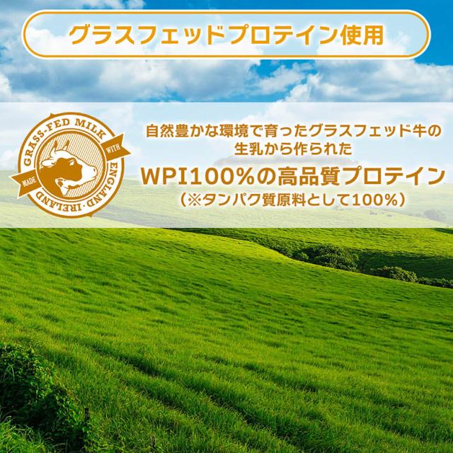 自然豊かな環境で育ったグラスフェッド牛の生乳から作られたWPI100%のホエイプロテイン(※タンパク質原料として100%)。