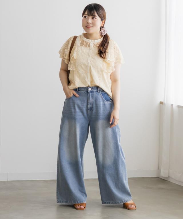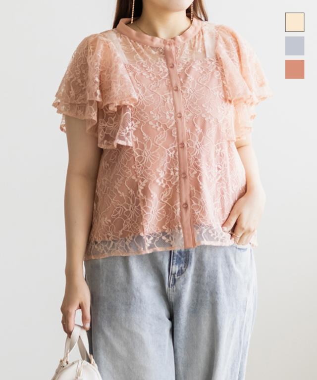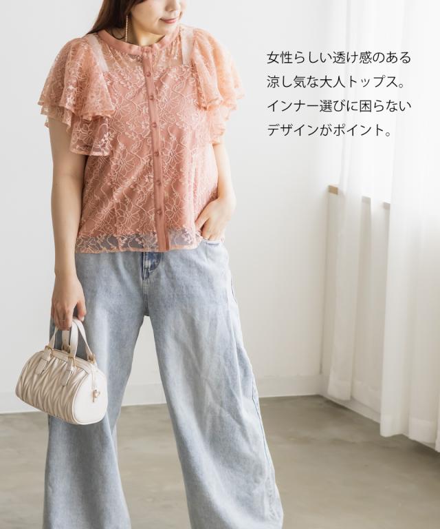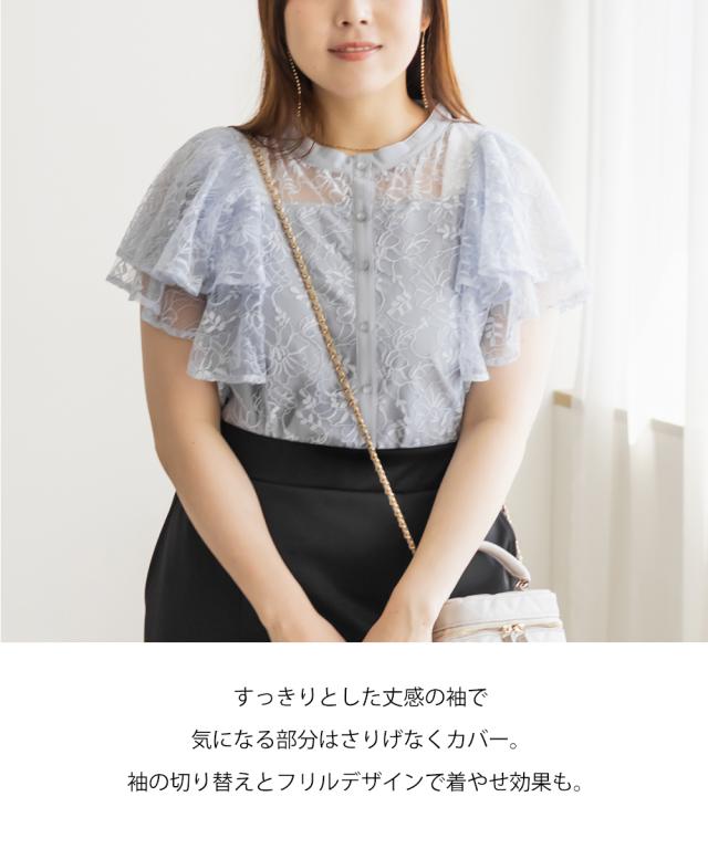 大きいサイズ/レディース/LL/3L/4L/CLETTEオリジナルフレア袖レースブラウス