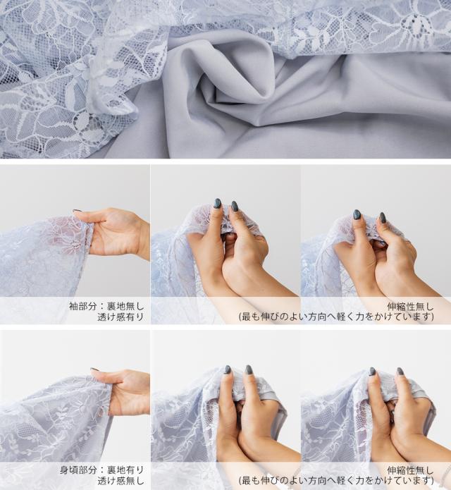| 程よくハリのあるレース素材です。 ※伸縮性のないさらっとした裏地付き |