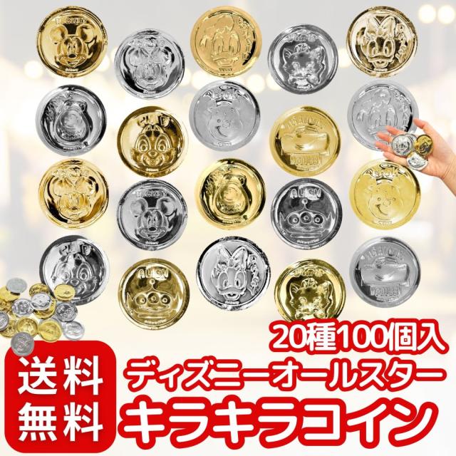 ?ミッキーやミニー、くまのプーさんなど、ディズニーキャラクターの、金&銀のコインがキラキラ可愛くてお祭りでも子供たちに大人気!〈 20種 100個入 〉