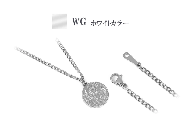 《 商品詳細 》 ●スペック サイズ:直径 約15mm 厚み 約2mm チェーン:全長 約50cm 幅 約2mm ●カラー ホワイトカラー / イエローゴールドカラー ●素材 ステンレス316L ●付属品 専用ポーチ