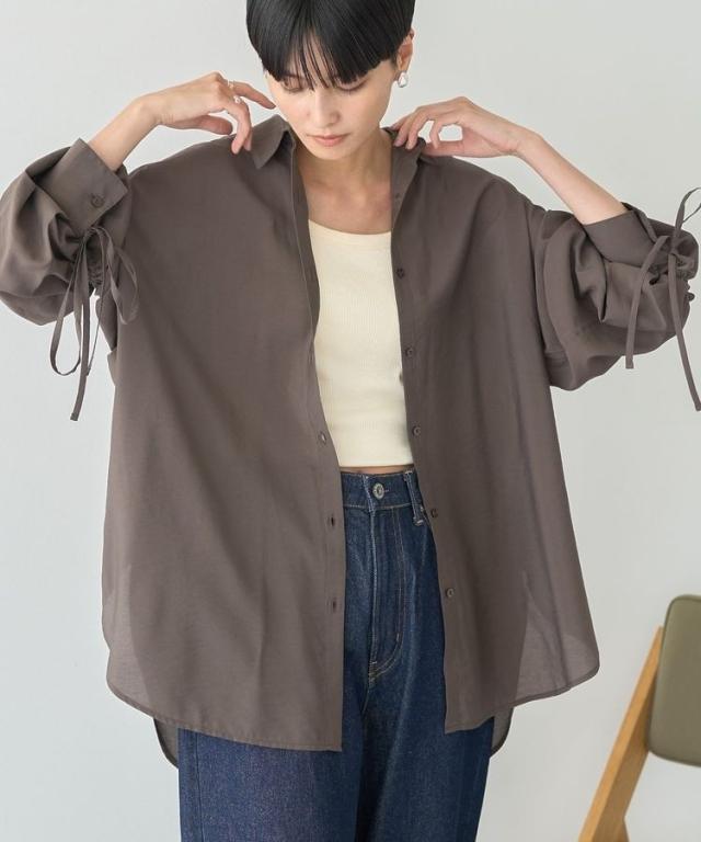 シアーバックギャザーリボンシャツ