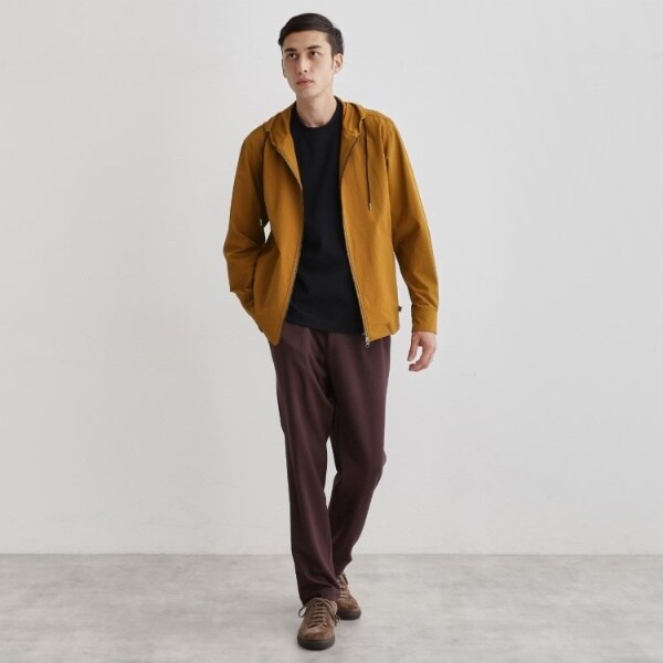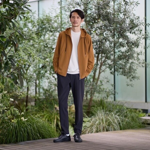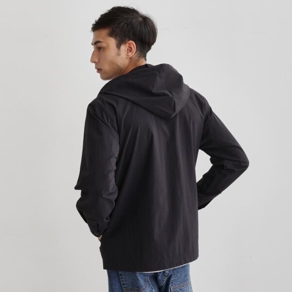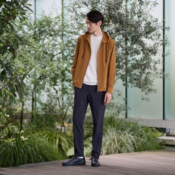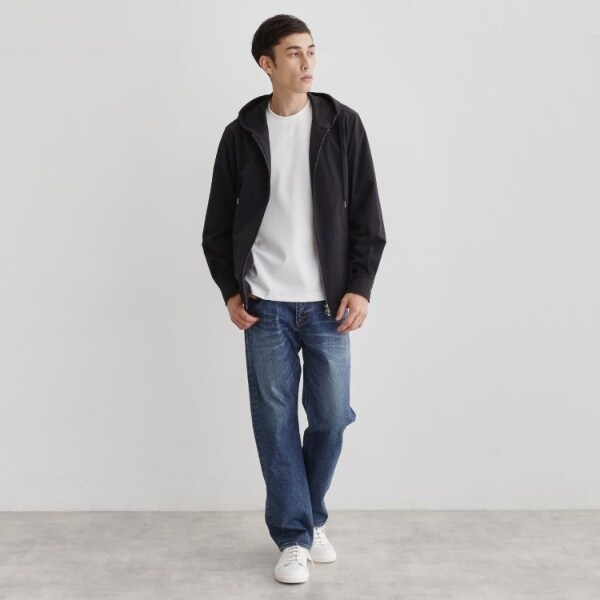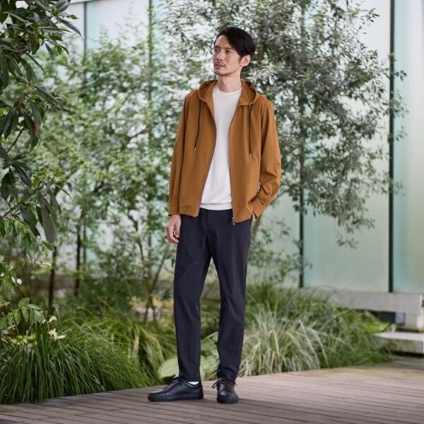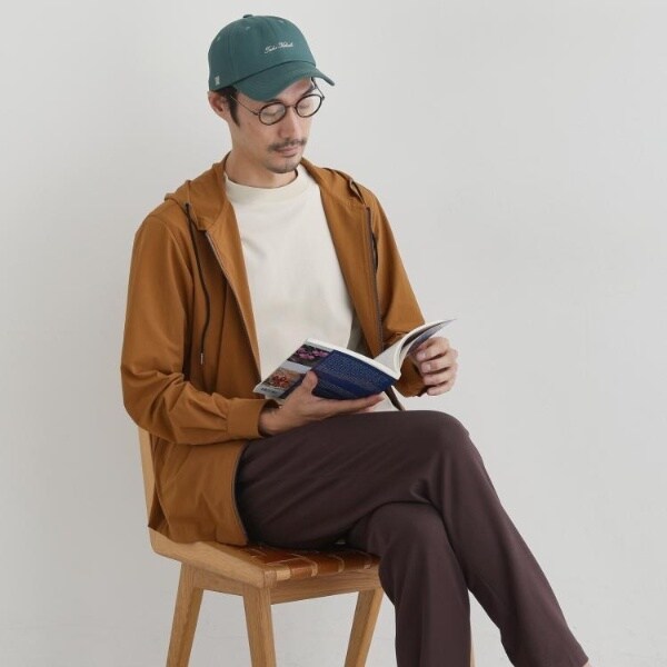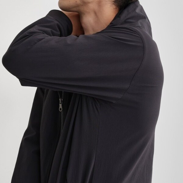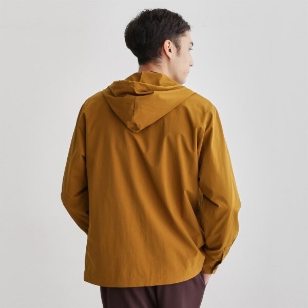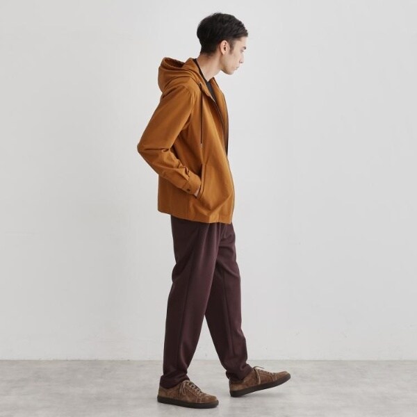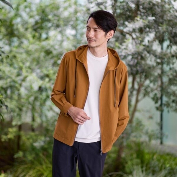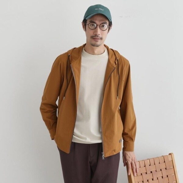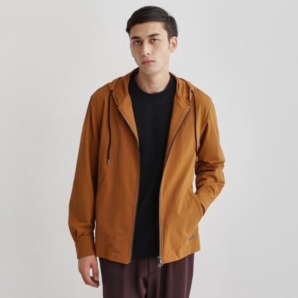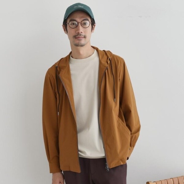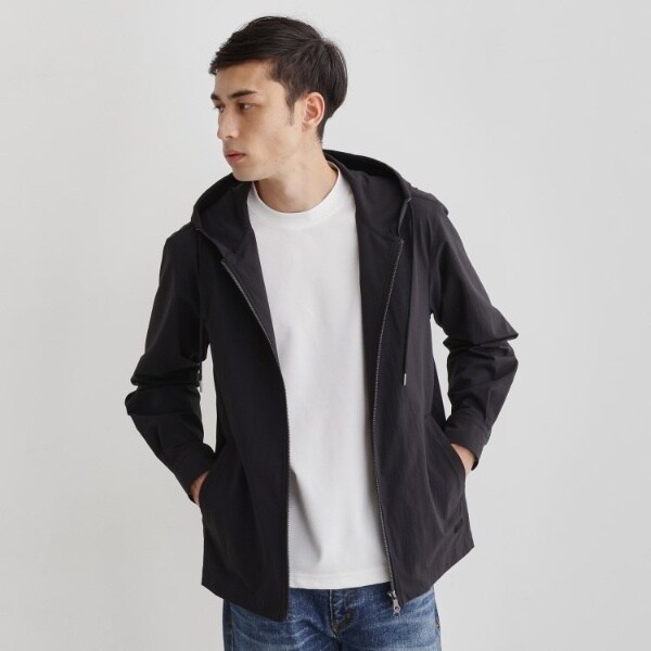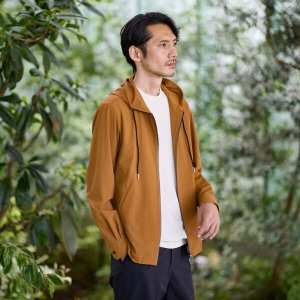 軽やかで伸縮性に富んだ素材を使用したジップアップフードブルゾン。