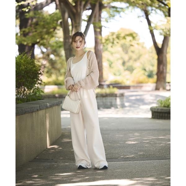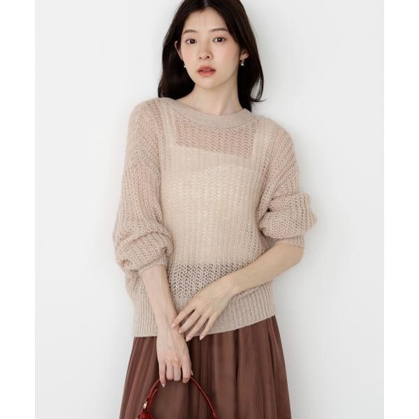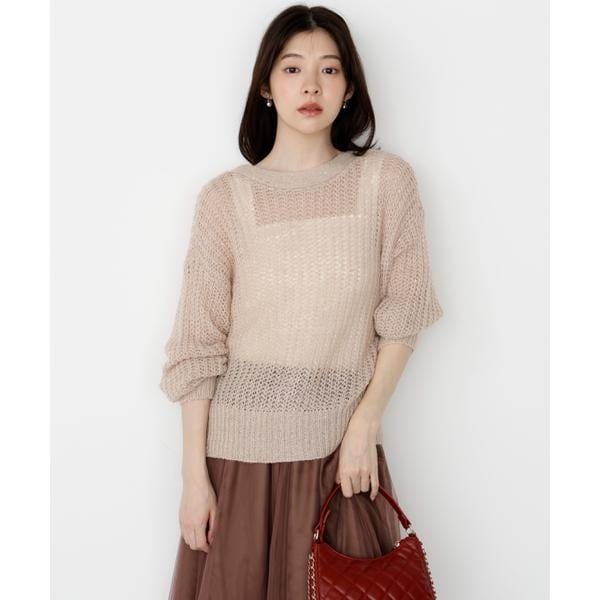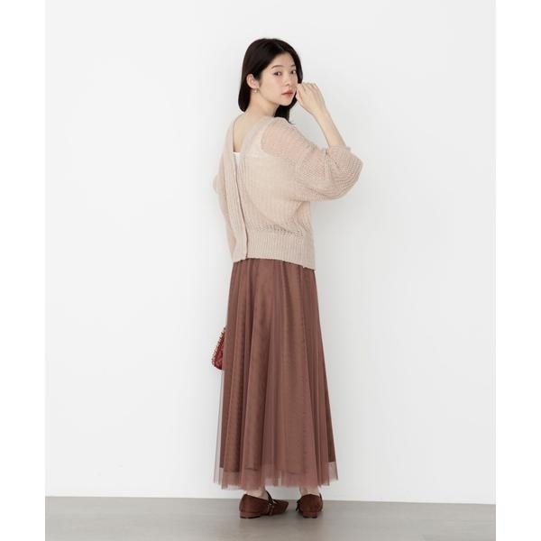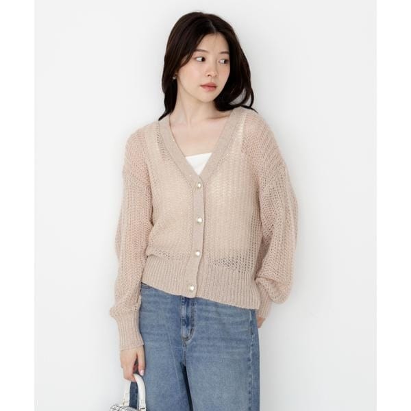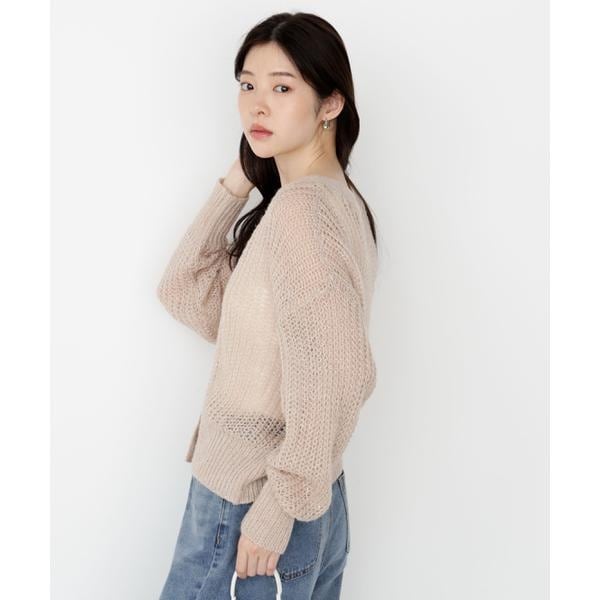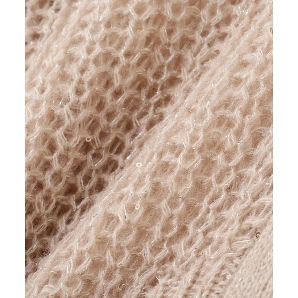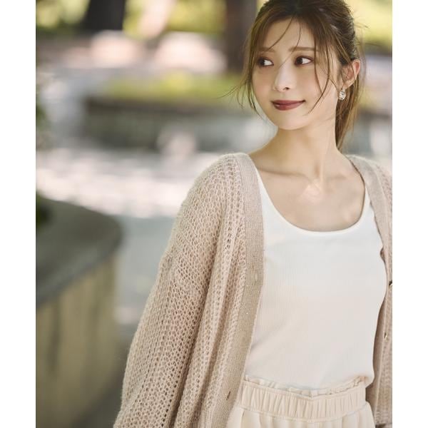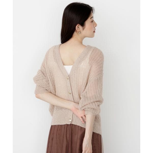 スパンコールと繊細なラメ糸をゆるく編んで今っぽく表現した透かし編みカーディガン。ふわっとした糸を使用、柔らかい肌触りです。前後2wayで着こなせるうえ、羽織りにもトップス風にも着回せるのでコーディネートの幅が広がります。