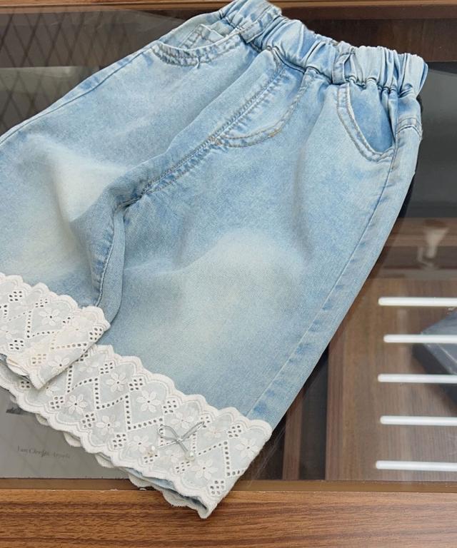 淡い色味のデニム生地に、裾部分に幅広のレースのフリルが施され、ガーリーでおしゃれな印象を与えます。ワイドパンツのシルエットは動きやすさを重視し、お子様が元気に遊んでも安心です。ウエストはゴムで調整可能なため、サイズ調整も簡単。ファッションと機能性を兼ね備えたアイテムです。