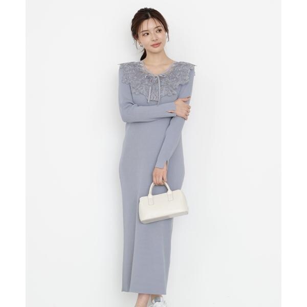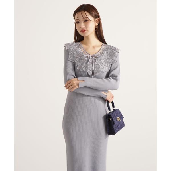 人気のある大胆なケープ風レース襟を取り入れたニットワンピースです。程よくネックラインが開いているフェミニンな雰囲気のデザイン。体のラインがキレイに見えるナローシルエットで、スタイルアップ効果を期待できます。後ろはスリット入り。普段使いはもちろん、デートやお出かけなど、幅広いシーンで着ていただけます。